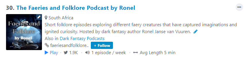 As featured on the 50 Best Folklore Podcasts and 15 Best Dark Fantasy Podcasts.